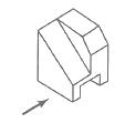 그림과 같은 입체도에서 화살표 방향을 정면도로 하였을 때 우측면도로 올바른 것은?