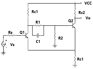 회로의 전달 특성은? (단, Q1과 Q2 트랜지스터는 스위치용이다.)