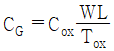 MOS 트랜지스터에서 게이트에서의 커패시턴스 관계식은? (단, L은 게이트의 길이, W는 게이트의 폭, Tox는 산화막의 두께, Cox는 SiO2의 유전율을 의미한다.)