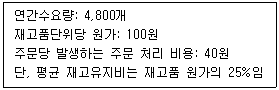 아래 글상자의 정보를 이용해서 계산한 EOQ는 몇 개인가?