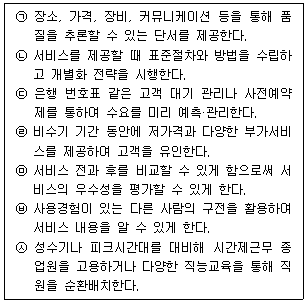 아래 글상자의 내용 중 서비스 특성의 소멸성(perishability)을 고려한 전략만을 나열한 것은?