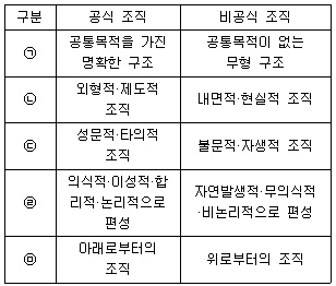 아래 글상자에서 유통기업의 공식 조직과 비공식 조직의 특징을 비교 설명한 것으로 옳지 않은 것은?
