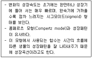 기존점포나 신규점포의 입지타당성을 분석할 때는 해당 상권이나 배후지역의 인구 변화를 추정할 필요가 있다. 이때 활용하는 다양한 수리적 모형들은 각각 상이한 변화의 형태를 가정하며 곡선의 형태도 다르다. 아래 글상자의 내용과 가장 가까운 모형으로 옳은 것은?