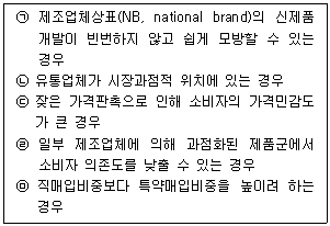 유통업체상표(PB: private brand) 도입을 활발하게 하는 원인들을 모두 고르면?