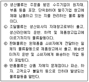 아래 글상자의 물류 활동에 대한 설명 중 옳지 않은 내용을 모두 나열한 것은?