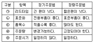 아래 글상자는 정기주문법과 정량주문법의 비교 설명이다. 옳지 않은 것은?