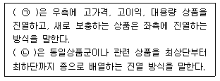아래 글상자에서 ㉠, ㉡이 설명하는 진열방식을 옳게 나열한 것은?