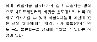 아래 글상자 내용은 철도컨테이너 하역방식 중 어느 방식에 대한 설명인가?
