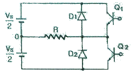 그림은 2.4Ω의 저항 부하를 갖는 단상 반파브리지 인버터이다. 직류 입력전압(Vs)이 48V이면 출력은 몇 W 인가?