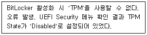 금융기관 IT부서 시스템 관리자가 Windows 11 Pro 신규 PC에서 BitLocker 활성화를 시도했다. 다음 상황에서 문제 해결을 위한 조치로 옳은 것은?