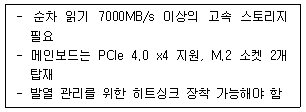 PC 조립 전문점 기술자 한씨가 고객의 4K 영상 편집용 워크스테이션을 구성하고 있다. 다음 상황에서 선택해야 할 스토리지 인터페이스로 옳은 것은?
