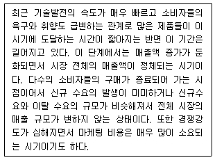 아래 글상자는 제품수명주기 중 어느 단계에 대한 설명이다. 이 단계에 해당하는 상품관리전략으로 가장 옳지 않은 것은?