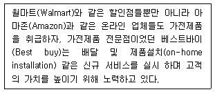 아래 글상자의 사례에서 설명하고 있는 유통업체 마케팅의 환경요인으로 가장 옳은 것은?