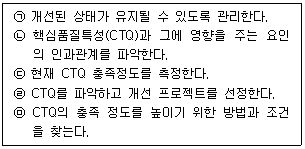 아래 글상자의 6시그마 실행 단계를 순서대로 바르게 나열한 것은?
