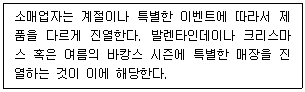 아래 글상자에서 설명하는 POP(point-of-purchase)진열방식으로 가장 옳은 것은?