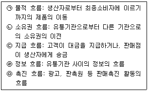 아래 글상자에서 유통경로 상 여러 경로기관의 유통흐름유형에 대한 설명으로 옳은 것을 모두 고르면?