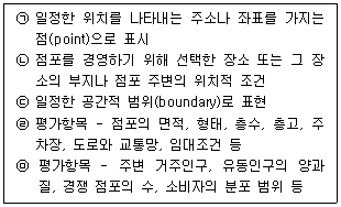 입지와 상권의 개념을 구분하여 인식할 때 아래 글상자 내용 중 입지의 개념과 평가에 해당되는 것은?