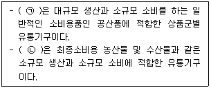 아래 글상자 괄호 안에 알맞은 상품군별 유통기구를 순서대로 바르게 나열한 것은?