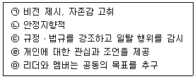 아래 글상자 내용 중 변혁적 리더십과 관련된 내용으로만 나열한 것을 모두 고르면?