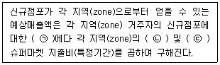 아래 글상자는 Huff모델을 활용하여 어느 지역 신규슈퍼마켓의 예상매출액을 추정하는 과정을 설명하고 있다. ㉠, ㉡, ㉢에 들어갈 용어로 가장 옳은 것은?