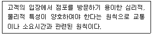 소매점의 입지 대안을 확인하고 평가할 때 의사결정의 기본이 되는 몇 가지 원칙들이 있다. 아래 글상자의 설명과 관련된 원칙으로 옳은 것은?