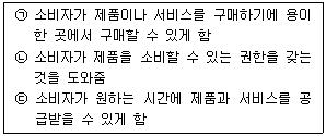 아래 글상자의 ㉠, ㉡, ㉢에서 설명하는 유통경로의 효용으로 옳게 짝지어진 것은?