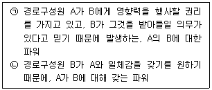 아래 글 상자의 설명과 경로구성원 파워(power)의 원천을 옳게 연결한 것은?