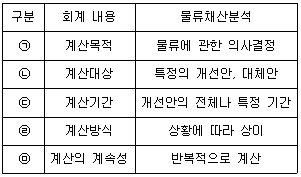 아래 글상자의 물류채산분석 회계 내용에 대한 설명으로 가장 옳지 않은 것은?