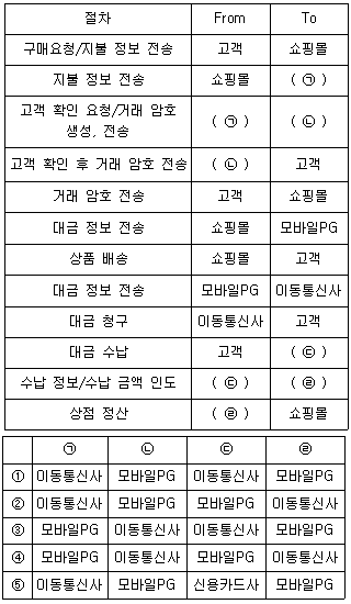 절차별 모바일 결제 서비스에 대한 내용 중 괄호 안에 들어갈 용어를 순서대로 나열한 것으로 가장 옳은 것은?