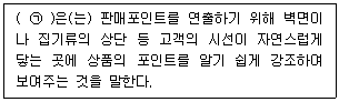 아래 글상자에서 ㉠이 설명하는 비주얼머천다이징(Visual Merchandising) 요소로 옳은 것은?