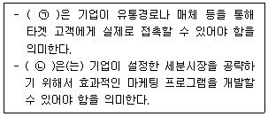 효과적인 시장세분화의 요건으로서 아래 글상자의 괄호 안에 들어갈 내용으로 가장 옳은 것은?