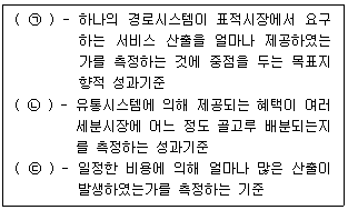 유통경로 성과를 평가하는 차원을 설명하는 아래 글상자에서 괄호 안에 들어갈 단어를 순서대로 나열한 것으로 가장 옳은 것은?