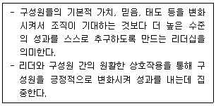아래 글상자에서 설명하고 있는 리더십 유형으로 가장 옳은 것은?