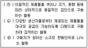 아래 글상자의 괄호안에 들어갈 중간상이 수행하는 분류기준으로 가장 옳은 것은?