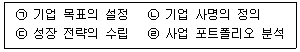 아래 글상자 내용으로 유통경영전략을 수립할 때 그 순서가 가장 옳게 나열된 것은?