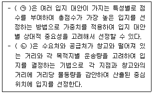 아래 글상자에서 설명하는 창고입지선정법을 순서대로 옳게 나열한 것은?