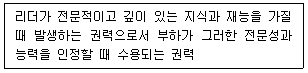아래 글상자 내용은 리더가 보유하는 권력 중 하나인데, 무슨 권력에 대한 설명인가?