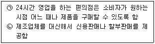 아래 글상자 ㉠과 ㉡에 해당하는 유통경로가 제공하는 효용으로 옳게 짝지어진 것은?