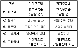 재고관리관련 정량주문법과 정기주문법의 비교 설명으로 옳지 않은 것은?