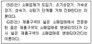 아래의 글상자 안 ㉠과 ㉡에 해당하는 소매업 변천이론으로 옳은 것은?