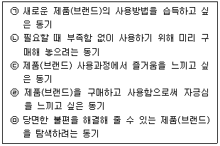 소비자의 구매동기는 부정적인 상태를 제거하려는 동기와 긍정적인 상태를 추구하려는 동기로 나뉘어진다. 아래 글상자 내용 중 부정적인 상태를 제거하려는 동기로만 짝지어진 것으로 가장 옳은 것은?