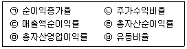 아래 글상자의 주요 재무지표들 중 기업의 수익성을 측정할 수 있는 비율들만으로 나열된 것은?