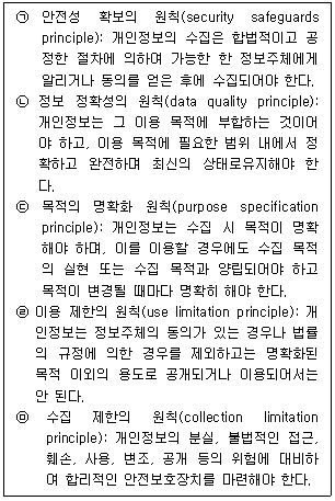 아래 글상자의 OECD 프라이버시 8대 원칙에 대한 설명 중 옳지 않은 것만을 나열한 것은?