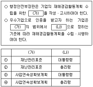 「재해경감을 위한 기업의 자율활동 지원에 관한 법률」상 기업의 재해경감에 대한 설명으로 (가), (나)에 들어갈 내용을 바르게 연결한 것은?