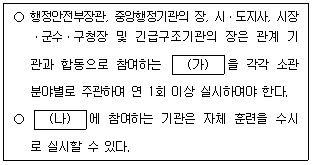 「재난 및 안전관리 기본법 시행령」상 (가), (나)에 공통으로 들어갈 훈련은?