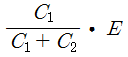 정전용량 C1과 C2의 회로에 E[V] 의 직류 전압을 가할 때 C1과 양단의 전압 [V]은 얼마인가?