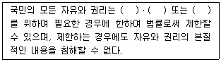 헌법 제37조제2항의 규정이다. ( )에 들어갈 용어가 순서대로 옳은 것은?