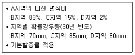 지역별 방재성능목표 설정∙운영기준상 다음조건일 때 A지역의 방재성능목표 강우량(mm/h)은? (단, 지역별 방재성능목표 산정방법을 적용하며,지속기간은 1시간으로 한다.)