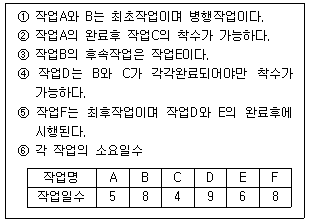 다음의 재해 복구 작업상황으로 활동중심일정을 계산했을 때 소요공기로 옳은 것은?