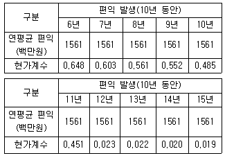 다음과 같이 건설시설물에 대한 값이 주어진 경우 연평균 편익의 현재가치는?